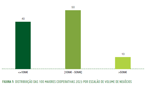 Como anteriormente referido, no que toca ao Volume de Negócios, as 100 maiores cooperativas agrícolas realizaram um total de 2,29 mil milhões de euros, registando um crescimento de 14,5% face a 2022, o que demonstra a estabilidade do setor e uma recuperação após o período de alguma estagnação económica devido à pandemia COVID-19. Destas 100, 81 registaram um crescimento positivo do volume de negócios, 59 das quais com crescimento superior a 10%.