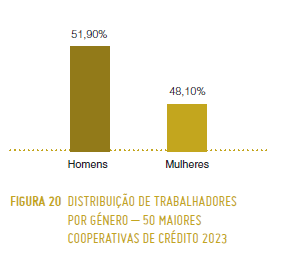 Ademais, cerca de 30% dos Órgãos de Administração das 50 maiores Cooperativas de Crédito eram mulheres, valor muito superior à média nacional, que se fixava nos 2,8% em 2023.