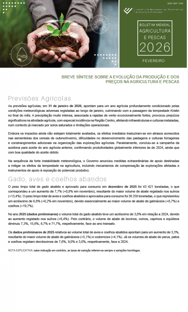Boletim Mensal da Agricultura e Pescas | Fevereiro de 2026
