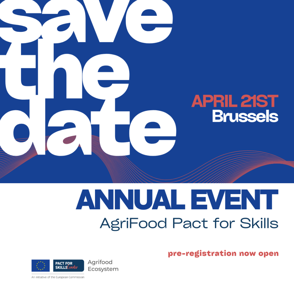No dia 21 de abril, em Bruxelas, reuniremos diversos stakeholders de todo o ecossistema agroalimentar europeu para discutir o futuro das competências no setor, explorar novas abordagens inovadoras para o desenvolvimento das competências do setor e procurar novas parcerias para reforçar a colaboração entre empresas, prestadores de ensino e decisores políticos.